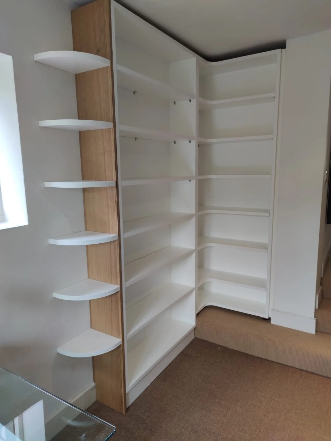 Milkwood bookcases can be free-standing or fitted above our alcove cabinets. They come in a variety of styles, materials & finishes and can be fitted with a choice of shelving options - fixed, adjustable or fully adjustable.
