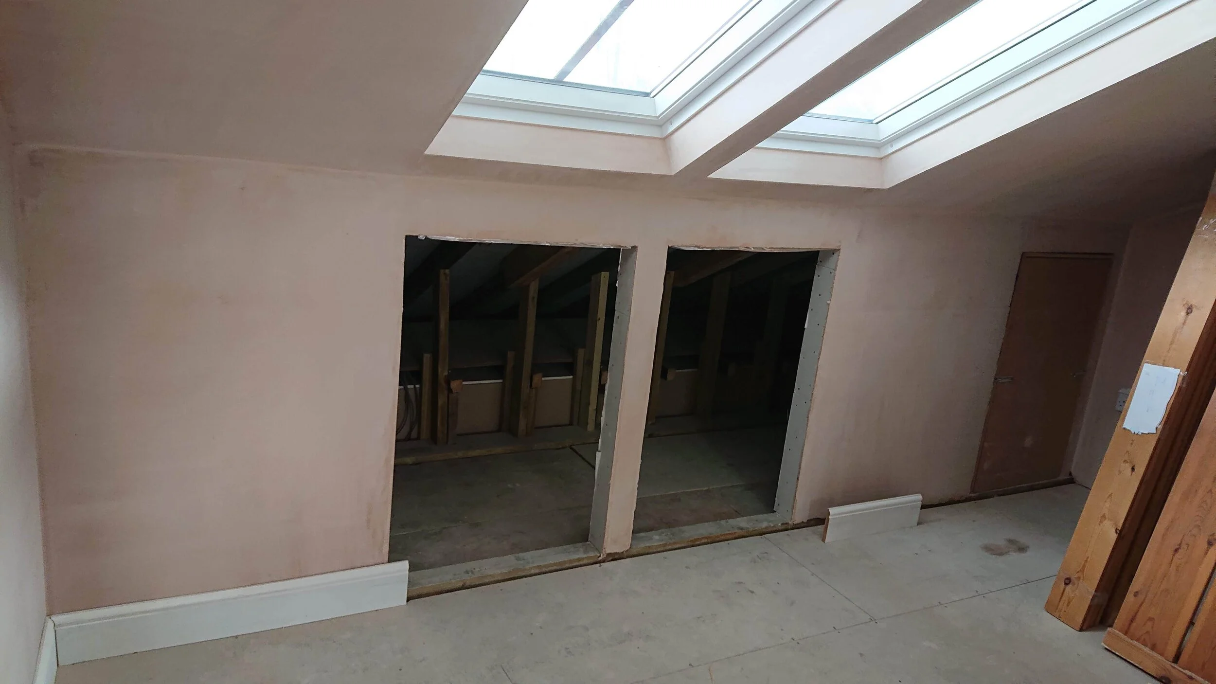 An added consideration was to be able to access the space under the eaves through an opening on the far wall. Behind the left hand door is a passageway rather than a wardrobe, yet we were able to do this in a way that maintained the symmetry from the exterior.