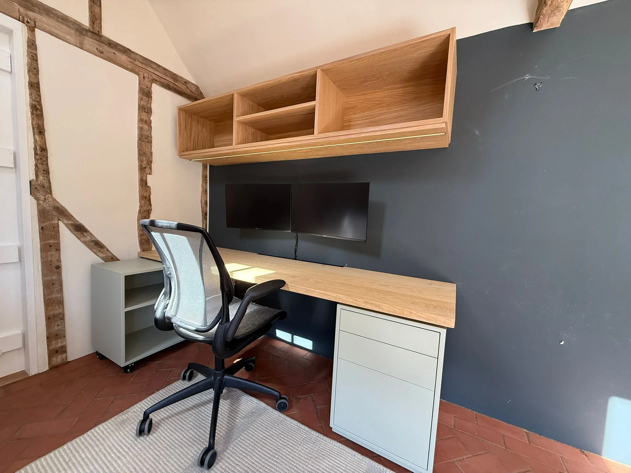 Your desk is the heart of your workspace, so it should be built around you. At Milkwood Furniture, we design and craft bespoke home office desks in Kent, made to measure to suit your room, working style, and storage requirements. From compact desks for study nooks to expansive workstations with integrated drawers and cable management, every desk is tailored to fit seamlessly into your space. With a wide choice of finishes, timbers, and styles, your desk will be unique, durable, and designed to last.
