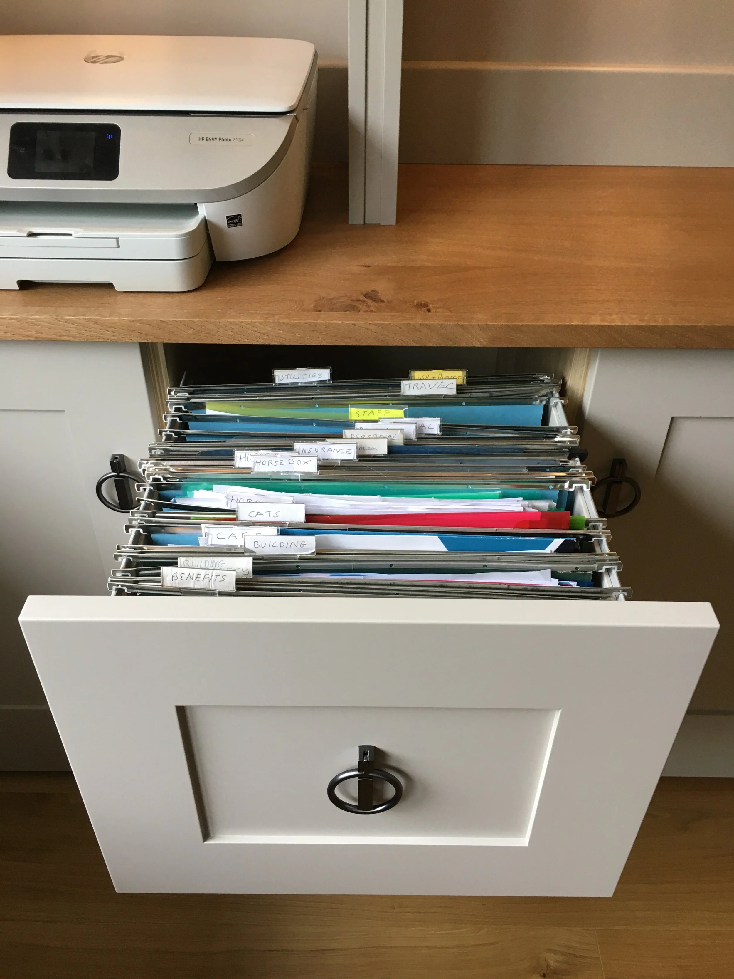 An organised office is a productive office. Our bespoke storage solutions are designed around the way you work, helping you keep everything from paperwork to stationery neatly arranged. From fitted drawers and filing cabinets to discreet cupboards and hidden compartments, Milkwood Furniture can create storage that blends effortlessly with your desk and shelving. Each piece is handcrafted and made to measure in Kent, giving you a workspace that is as functional as it is elegant.